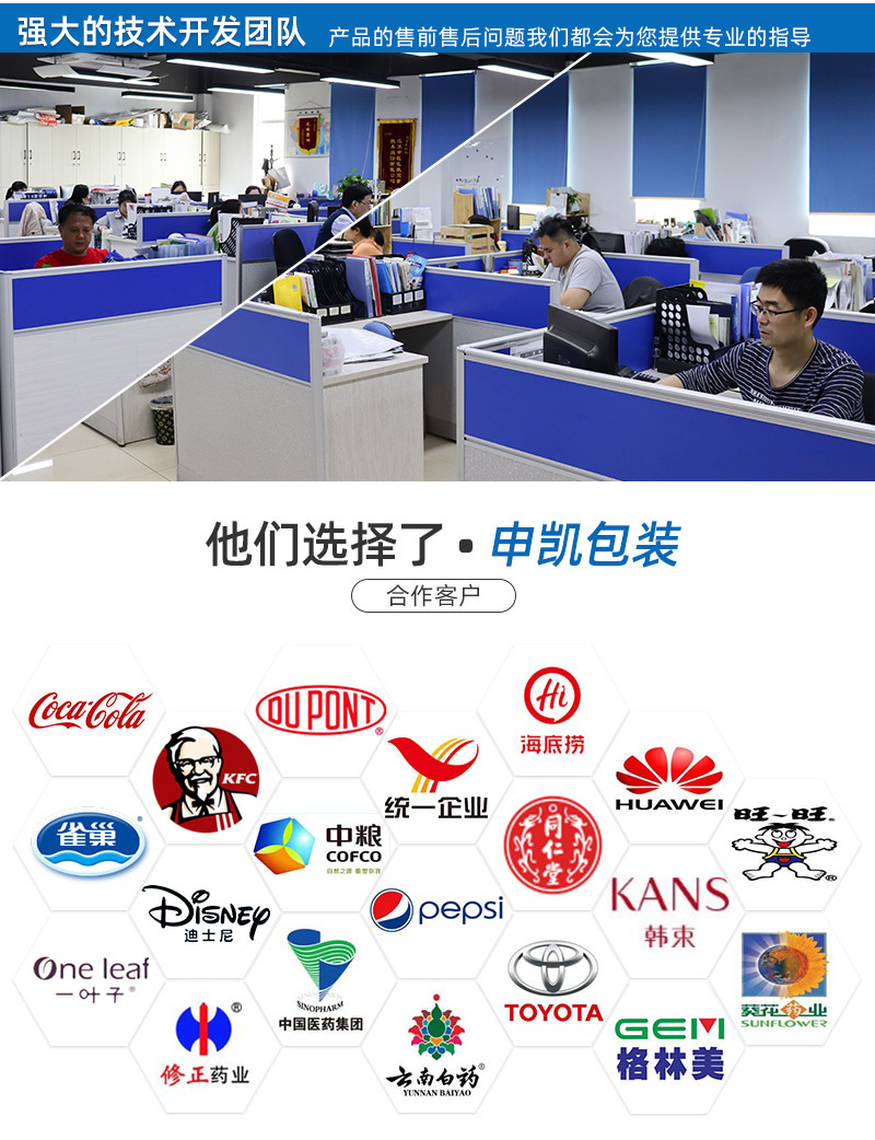 只要用了我们的包装,不管是包装膜的问题还是包装机的问题,都是我们的问题!只要有质量问题,马上召回,不管有多远!